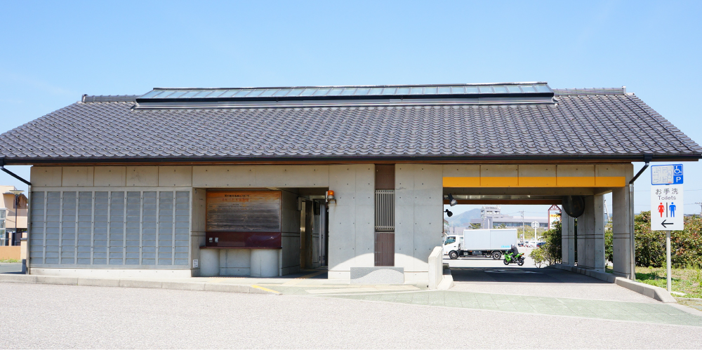 道の駅「とぎ海街道」は屋外にも24時間ご利用できるトイレがあります。店舗施設の営業時間外でもご利用になれます。